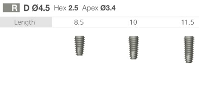 Hoe groter de lengte van het implantaat, hoe langer het rechte lichaam. Daarom kan een lang implantaat stabiel worden geplaatst zonder plotselinge veranderingen teweeg te brengen tijdens de operatie.